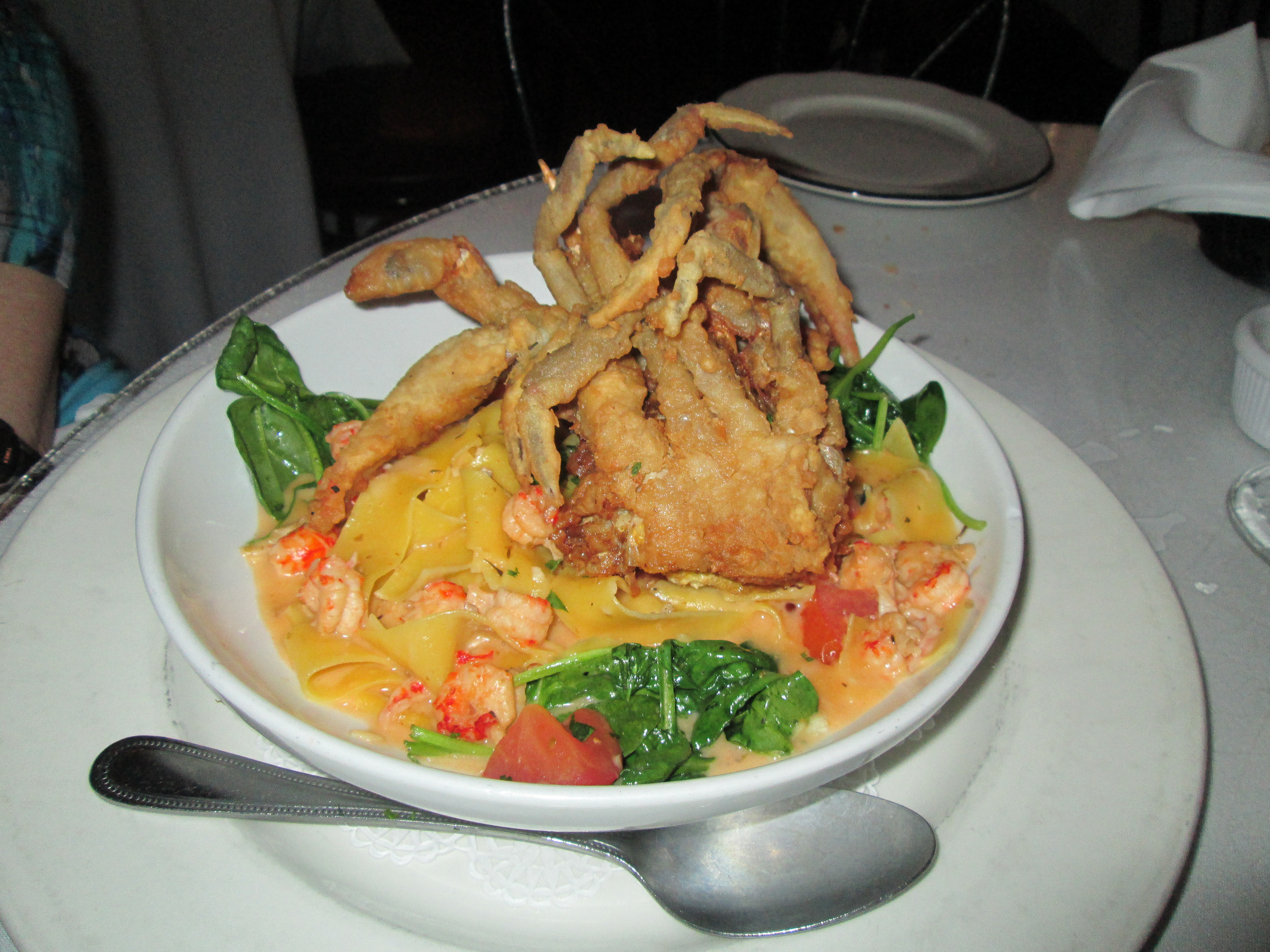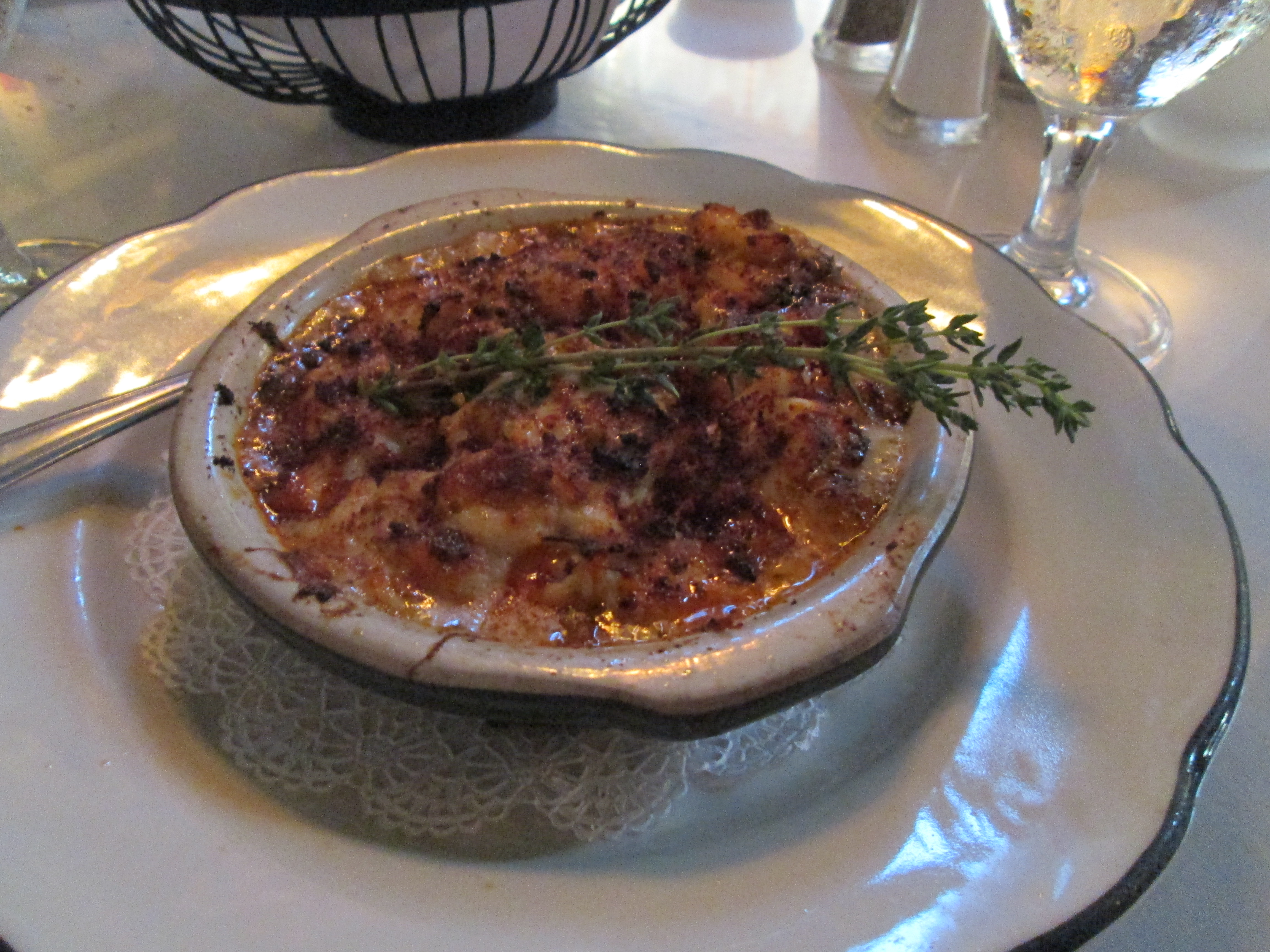 Dinner was at Irene’s. Last year we tried to get into this restaurant but without a reservation they said the wait was close to two hours. We took a pass last year and made sure we had reservations this year. As many of the readers of this blog know, my mother’s name is Irene. And the meal was just like she prepared it herself. We started out with Crab Gratin and Escargot for appetizers. We then had Crawfish Bisque. Our main courses were Soft-Shell Crab and Lasagna (calling it lasagna is an understatement. This dish was spectacular). For dessert we had bread pudding (also an understatement). Foodies, check out the photos below.